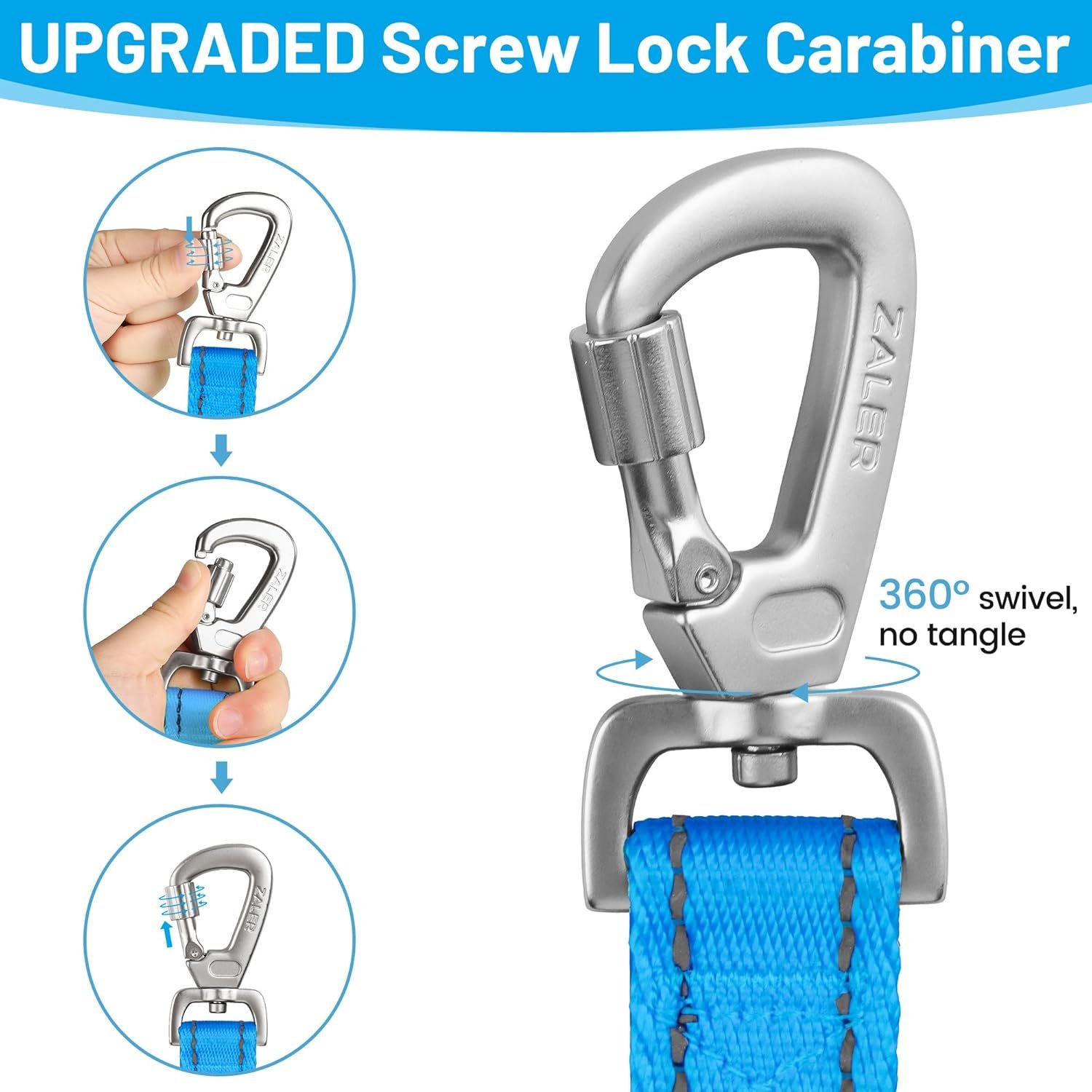 【UPGRADED Safety Screw Lock Carabiner】We have upgraded our carabiner to a screw lock type for all dog leashes. Manual screw gate reduces the chance of open-gate failure. There is a smooth screw action on the locking mechanism. Perfect screw gate locking feature for our short dog leashes!!! It can greatly increase the safety of your beloved furry friends.