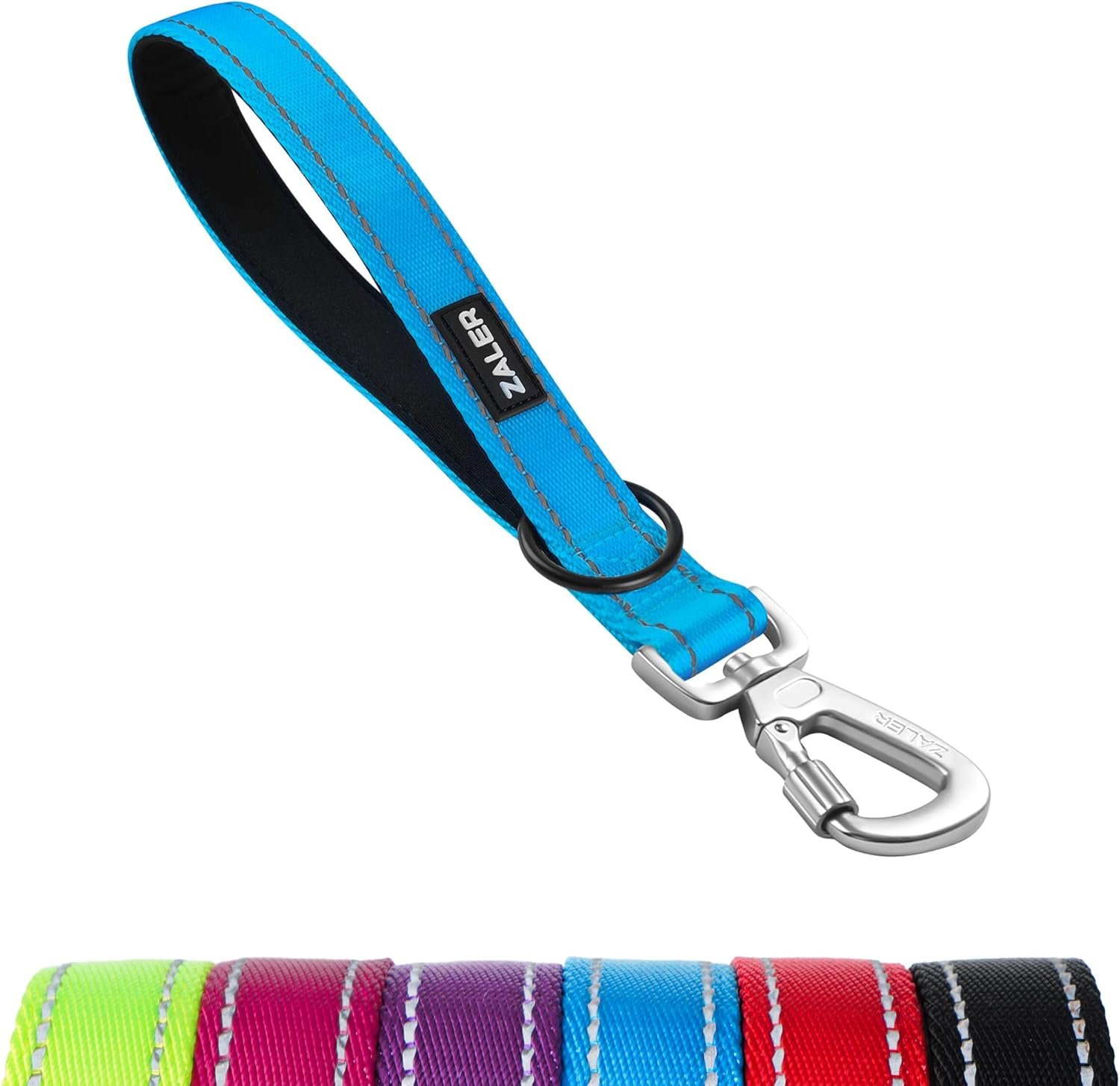 ZALER Short Dog Leash 1 ft, 12 Inches Traffic Leashes for Dogs, Nylon Reflective Dog Lead with Padded Handle, Heavy Duty Pet Leash with Carabiner Clip for Large and Medium Dogs (12″ Blue)
