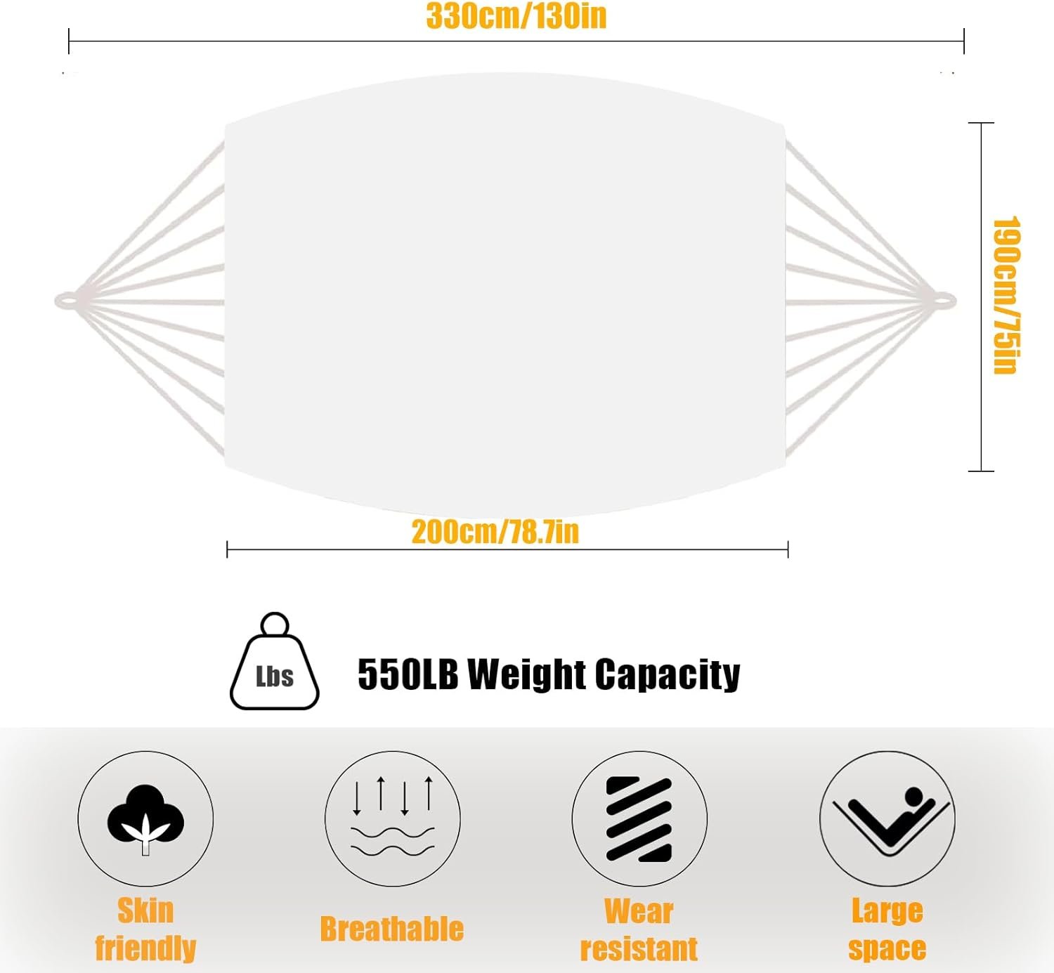 ZEAN Handwoven Hammock by Thick Cotton Rope XXL Two Person Hammock for Outside, Patio Backyard Garden 550LB Capacity