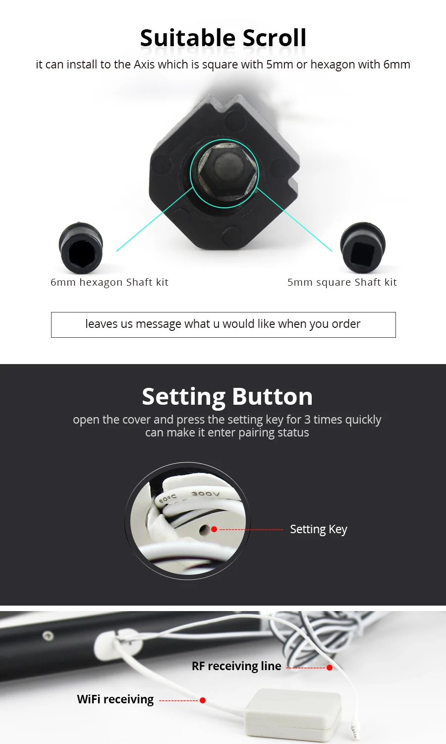 – Four kinds of interface to choose for: square 5mm*5mm shaft / hexagon 6mm*6mm shaft.