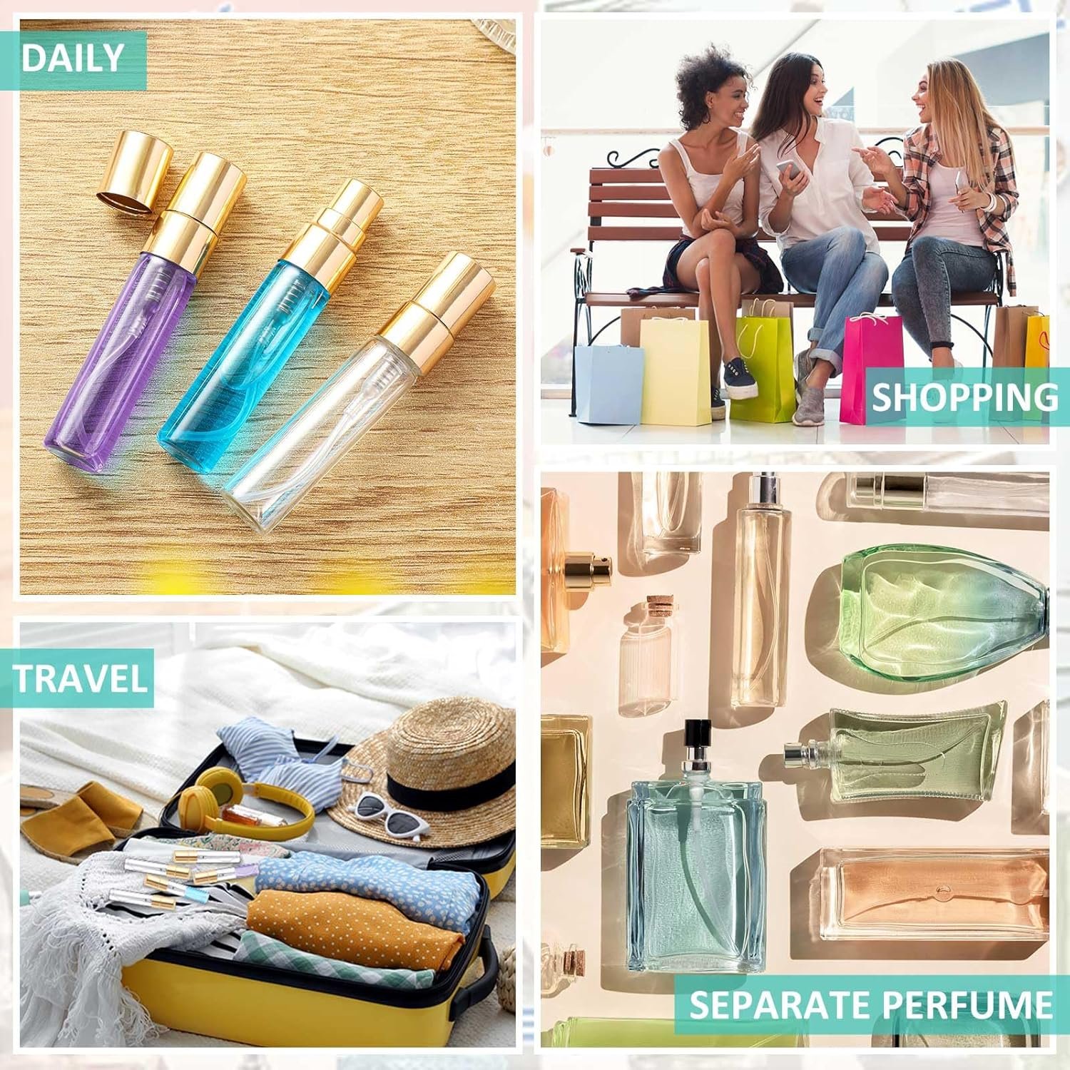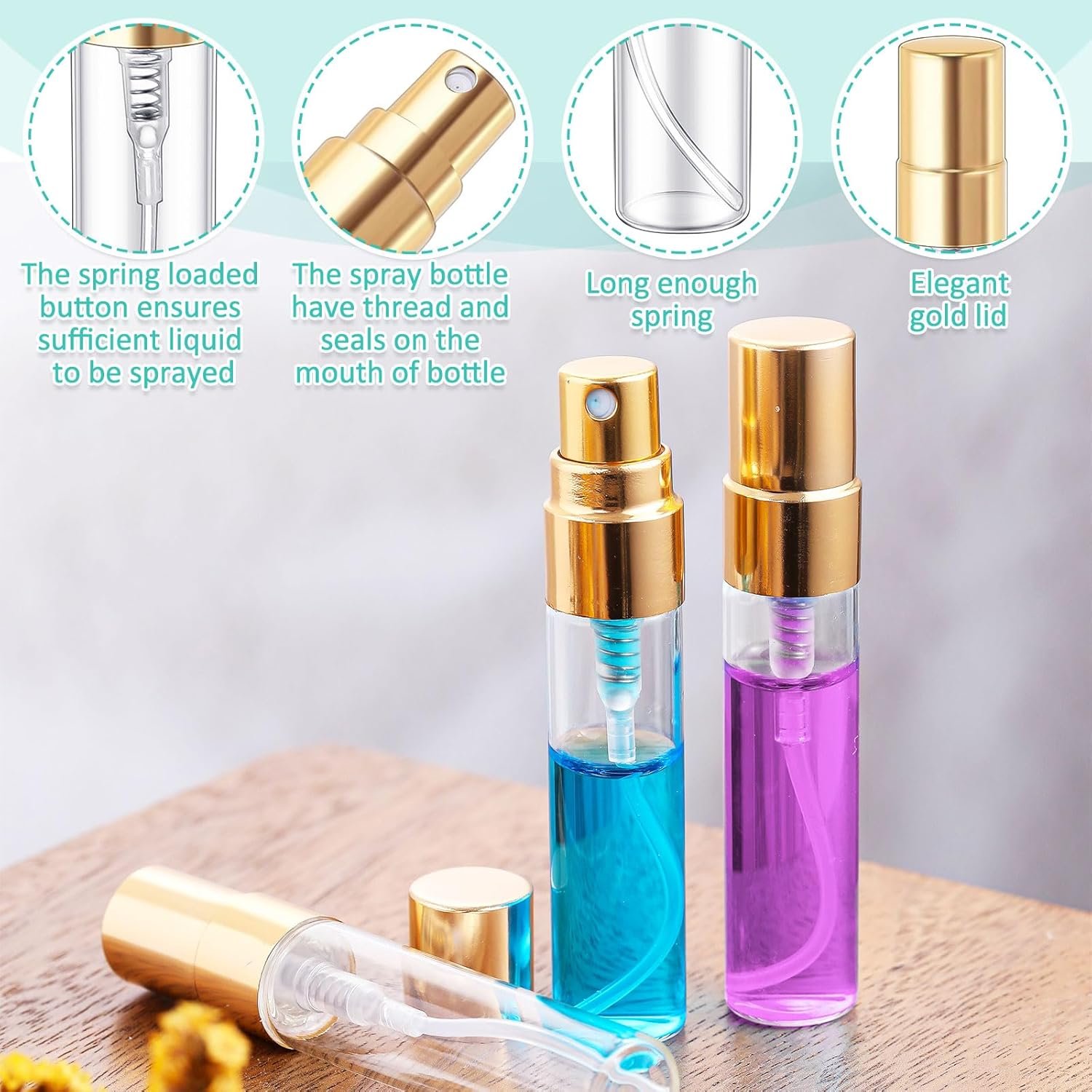 Leak Proof Design: the mini atomizer sprayer for perfume is equipped with thread, and the top of the spray bottle and the bottle mouth match very closely and tightly, which can effectively avoid leaking