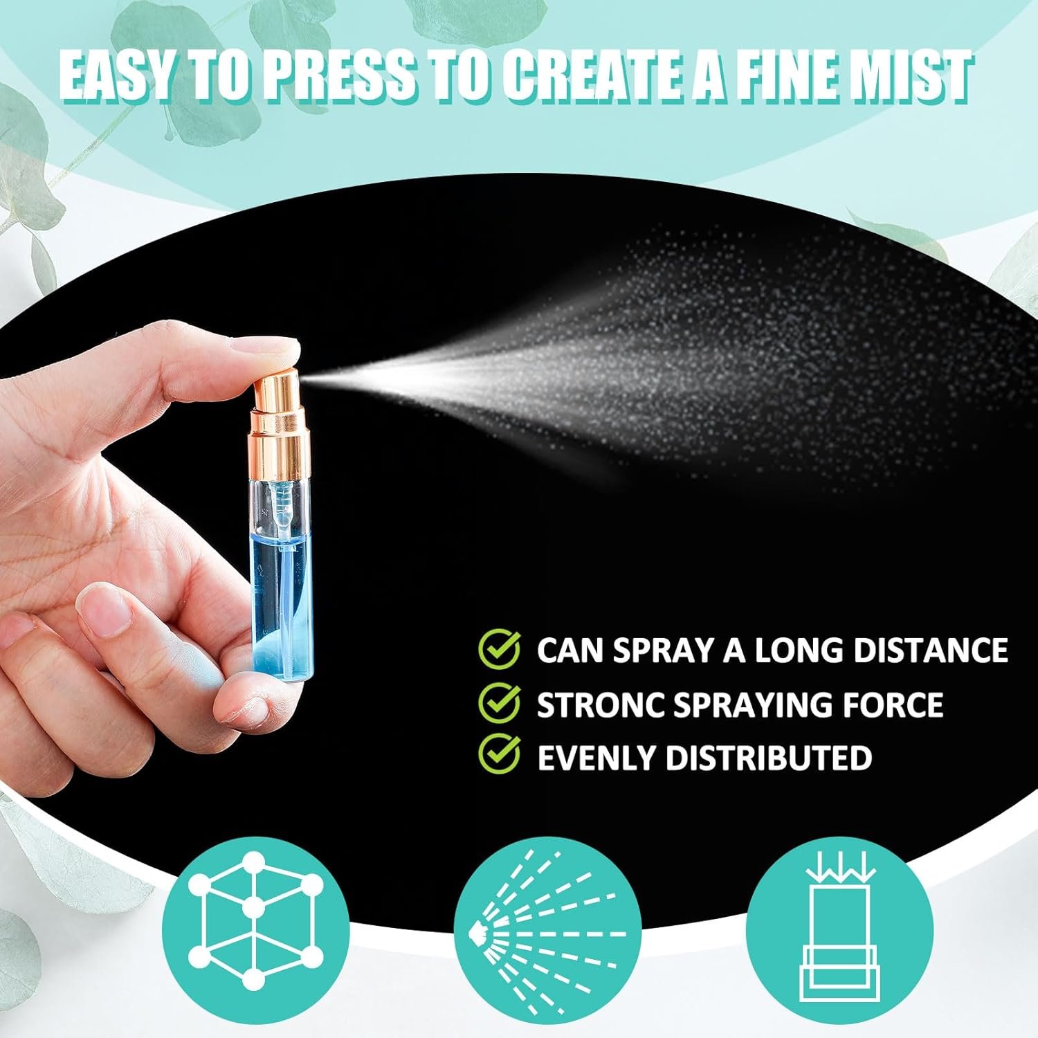 Material and Fine Mist Design: the mini spray bottle is made of glass, which is refillable and durable; The mini spray bottle adopts nozzle design, which will not block or get stuck; The spring is long enough to squeeze out liquid, the spring button ensures that enough liquid is sprayed, and fine mist is evenly distributed