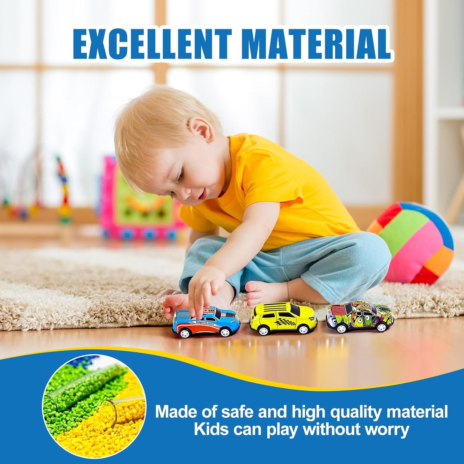 Kids Safety Design: Our 36pcs mini race cars are designed with rounded corners and the bottom of the body is made of ABS plastic, which is safe, reliable and durable, allowing kids to enjoy a long time playing experience. The cars are also energy efficient and eco-friendly, just pull back and let it go.