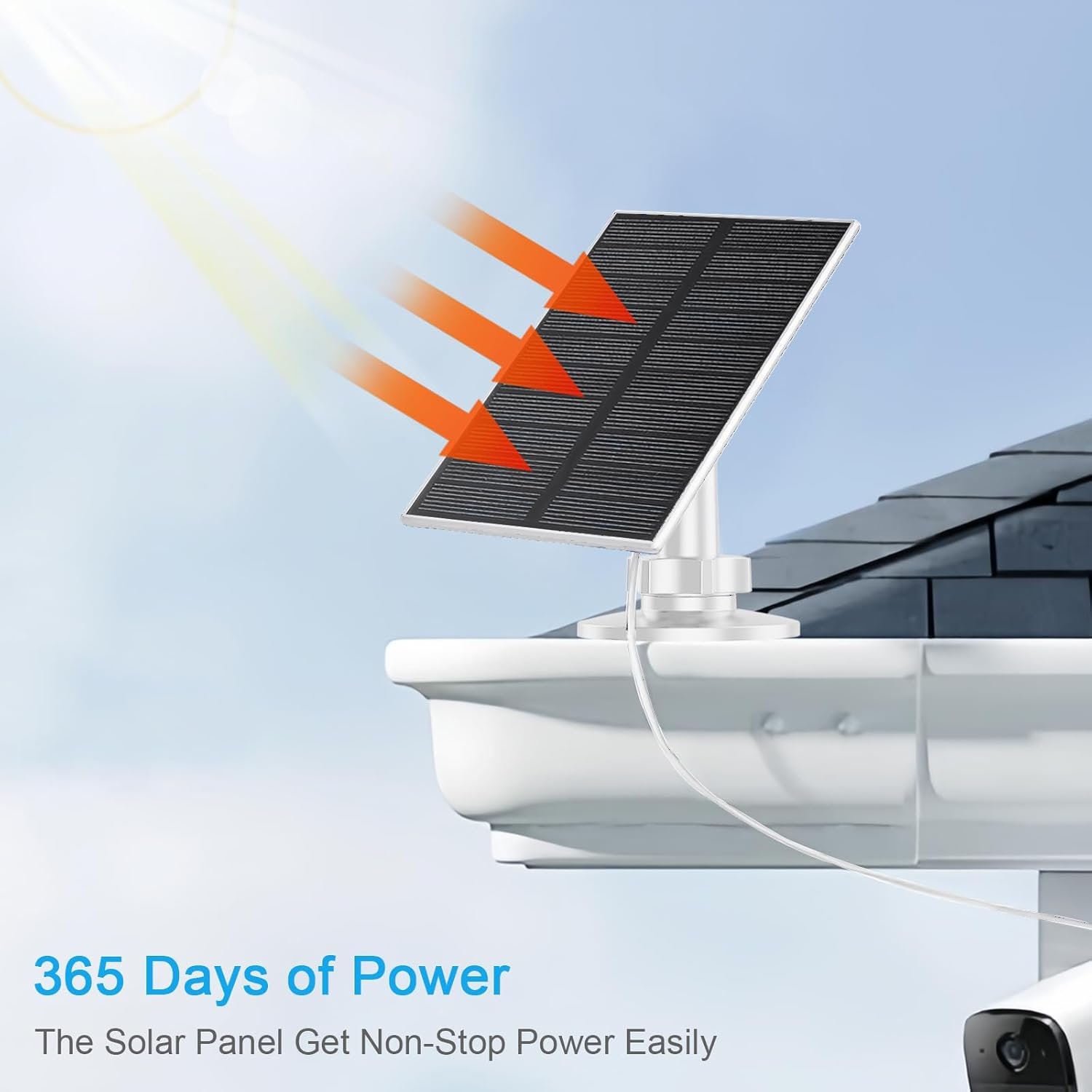 【365 Days Power Supply】Our camera solar panel is made of monocrystalline silicon material, and the efficiency of absorbing sunlight is higher than ordinary USB-C solar panel. It can continuously power the rechargeable battery security camera all year round under direct sunlight, eliminating the need for frequent uninstallation and manual recharging.