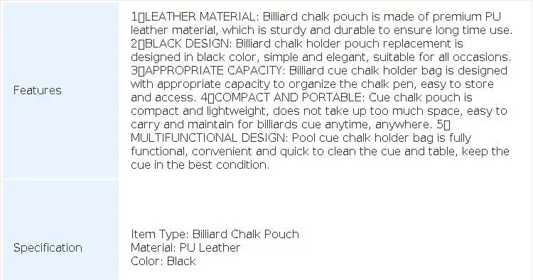 1 review for ZK30 Billiard Chalk Holder Pouch PU Leather Multifunction Portable Pool Cue Chalk Holder Bag for Billiard Lovers Black