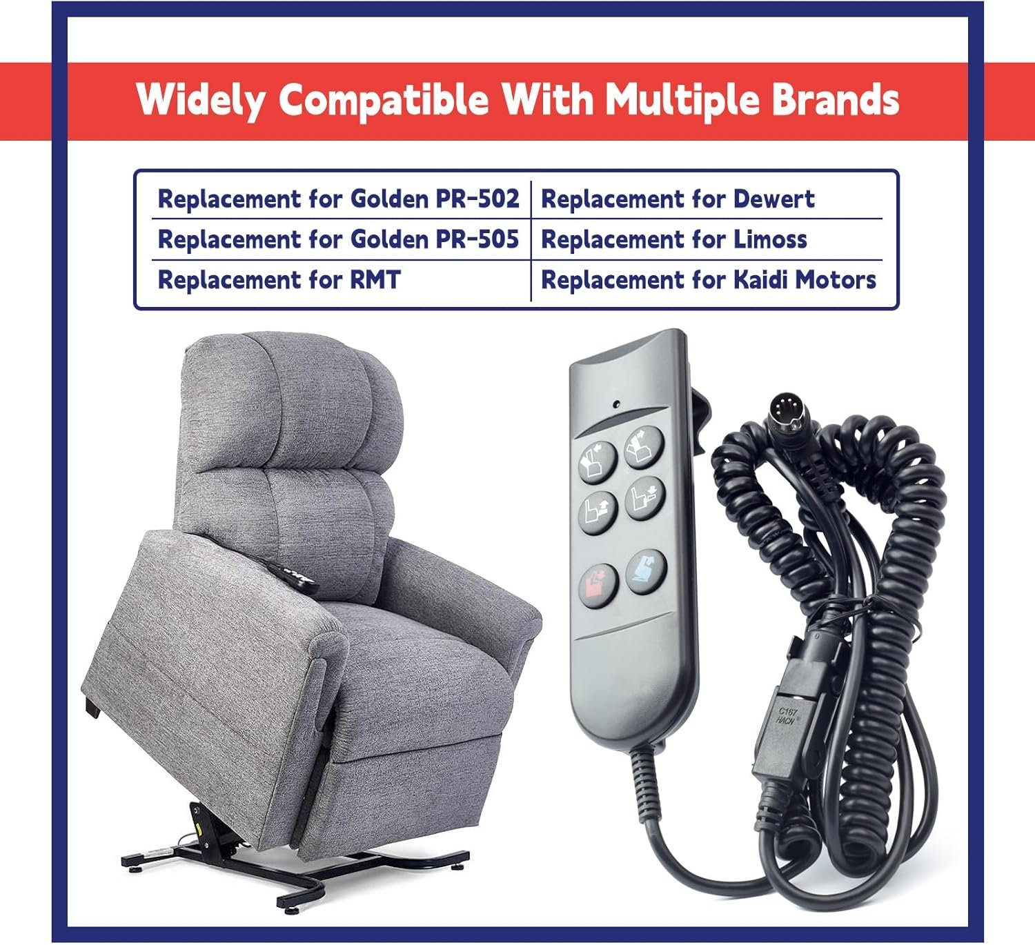 Wide Compatibility: ZK756HCL hand control remote replacement for lift chairs including but not limited to PR-502 PR-505, replacement for RMT for Dewert for Limoss for Kaidi Motors common motors for lift chairs