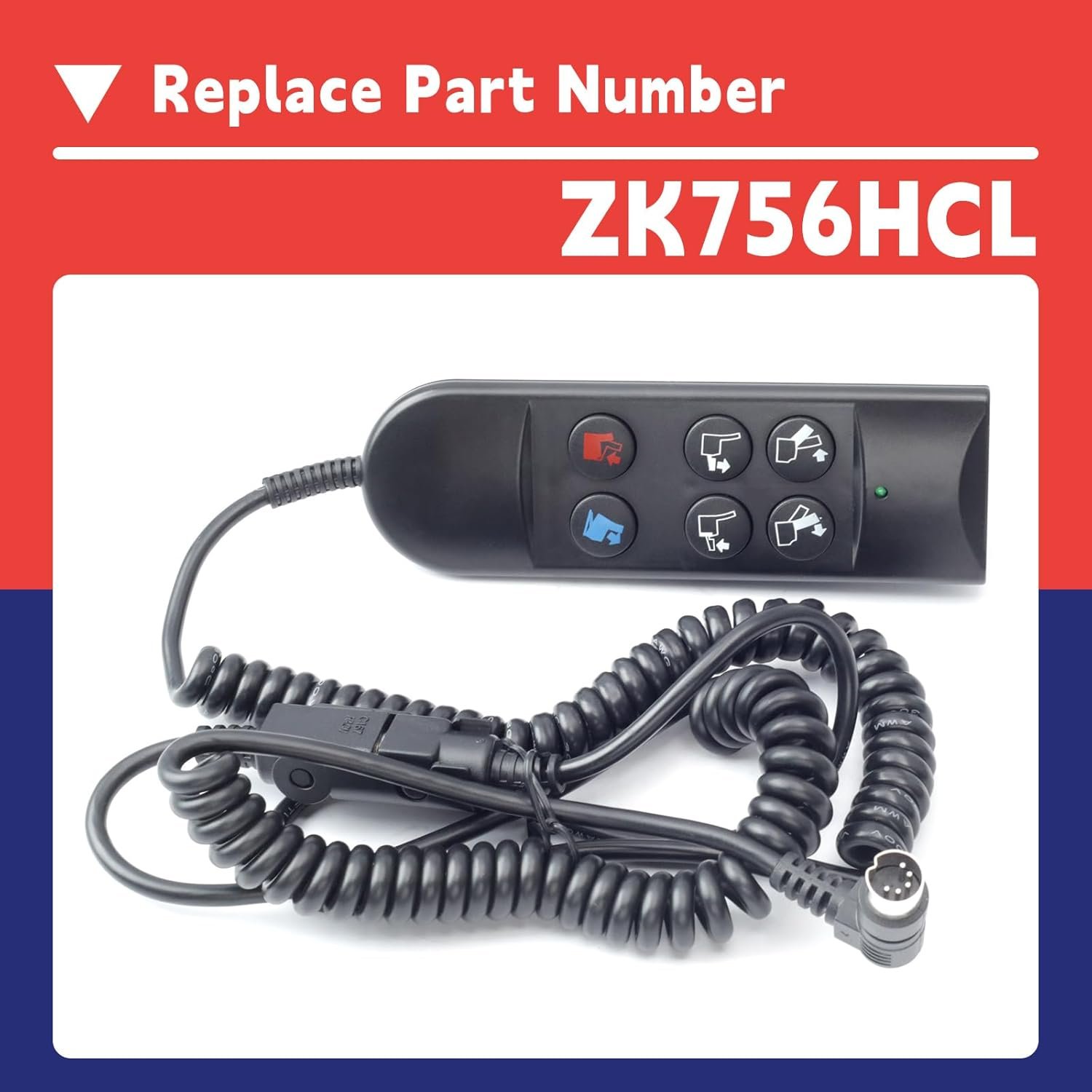 Replace Part Number: Replace ZK756HCL, this lift chair recliner manual control remote has 6 buttons and 5 pins. The last two buttons are used to control the lifting and lowering of the entire chair