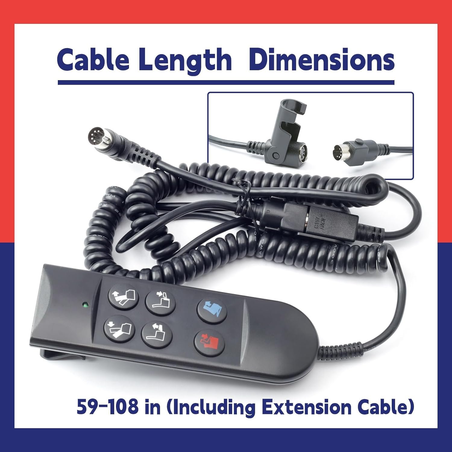 Flexible Control: The cable of the lift chair remote control (including the extension cable) is approximately 59 to 108 inches long. The sufficient length allows users to control the lift chair from different positions