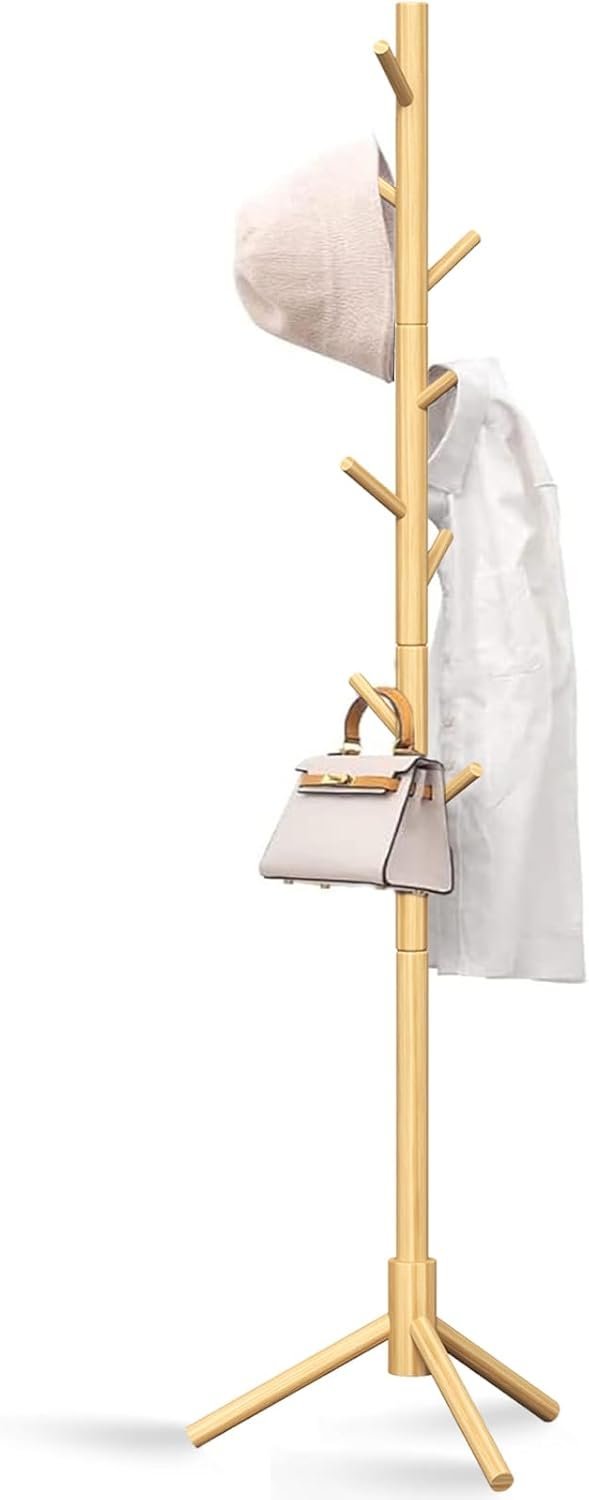 Z&L HOUSE Coat Rack Freestanding, Pure Natural Solid Wooden Coat Tree, 8 Hooks And Adjustable Height Floor Hanger, Used In The Bedroom Living Room Office To Hang Clothes, Hats, Bags