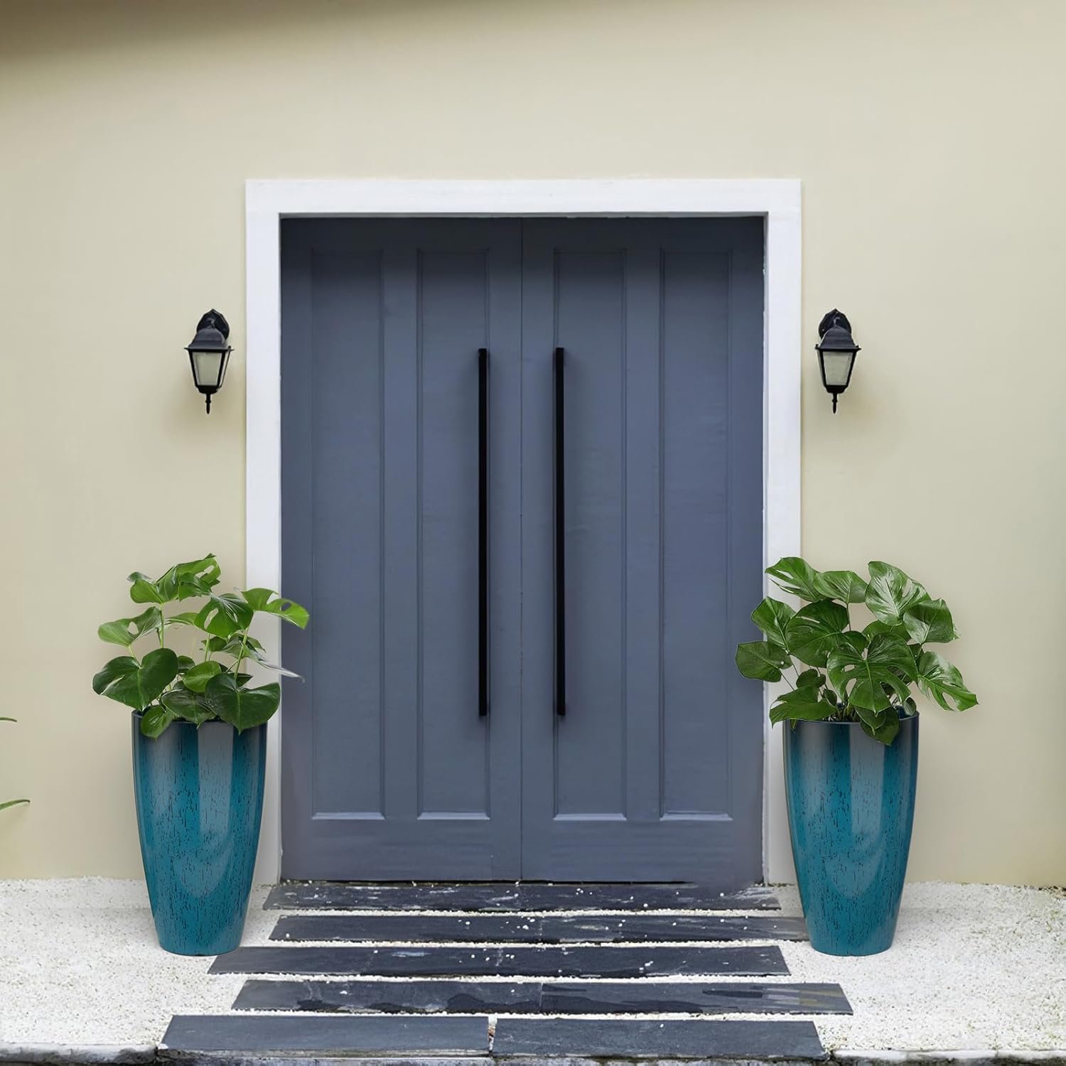 LIGHTWEIGHT & UV RESISTANT: Set of 2 lightweight tall outdoor planters made in durable, resistant to fading and UV;