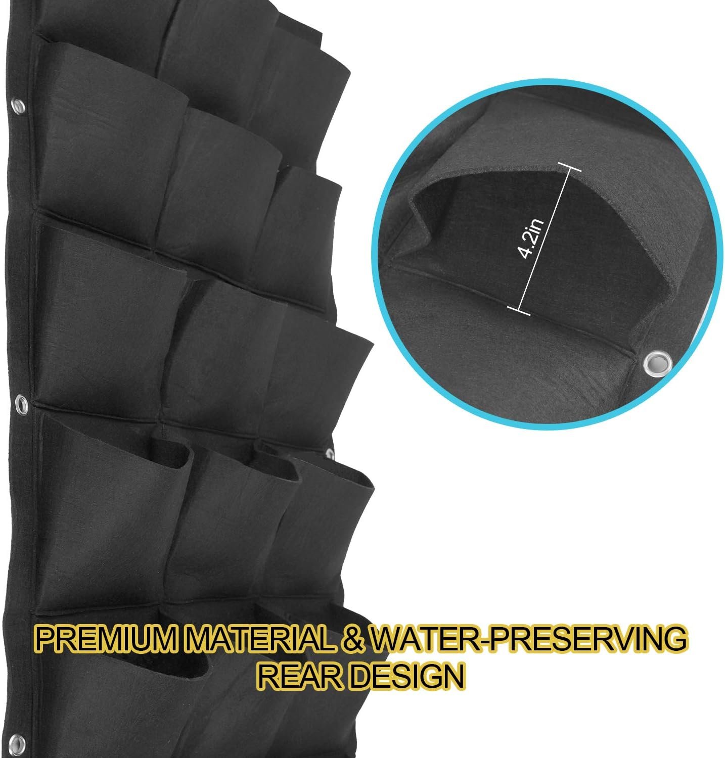 PREMIUM MATERIAL & WATER-PRESERVING REAR DESIGN – The hanging garden growth bag is made of high-quality and environmentally friendly felt. Practically, this growing bag retain a moderate water level for perfect growing conditions for your plants, such as herbs, strawberries, flowers, vegetables and so on. The rear water-preserving layer of the growing bag effectively protects the wall without stains, and the leakproof design of the bottom does not make your floor dirty.
