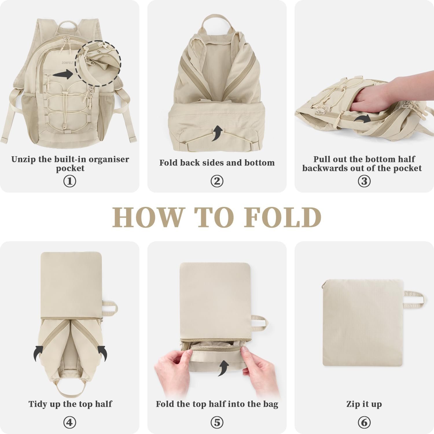 Instant Space-Saving Fold: This foldable backpack measures 10.2 x 6.2 x 15.4 inches when unfolded and 5.9 x 6.7 inches when folded. It can transform instantly from a full-size daypack to a compact pouch that fits even in coat pockets. Store it in your main backpack or suitcase, keep it as an emergency backup, or attach it to your hiking pack for unexpected needs. Whether you’re at the airport or outdoors, everything remains easily accessible
