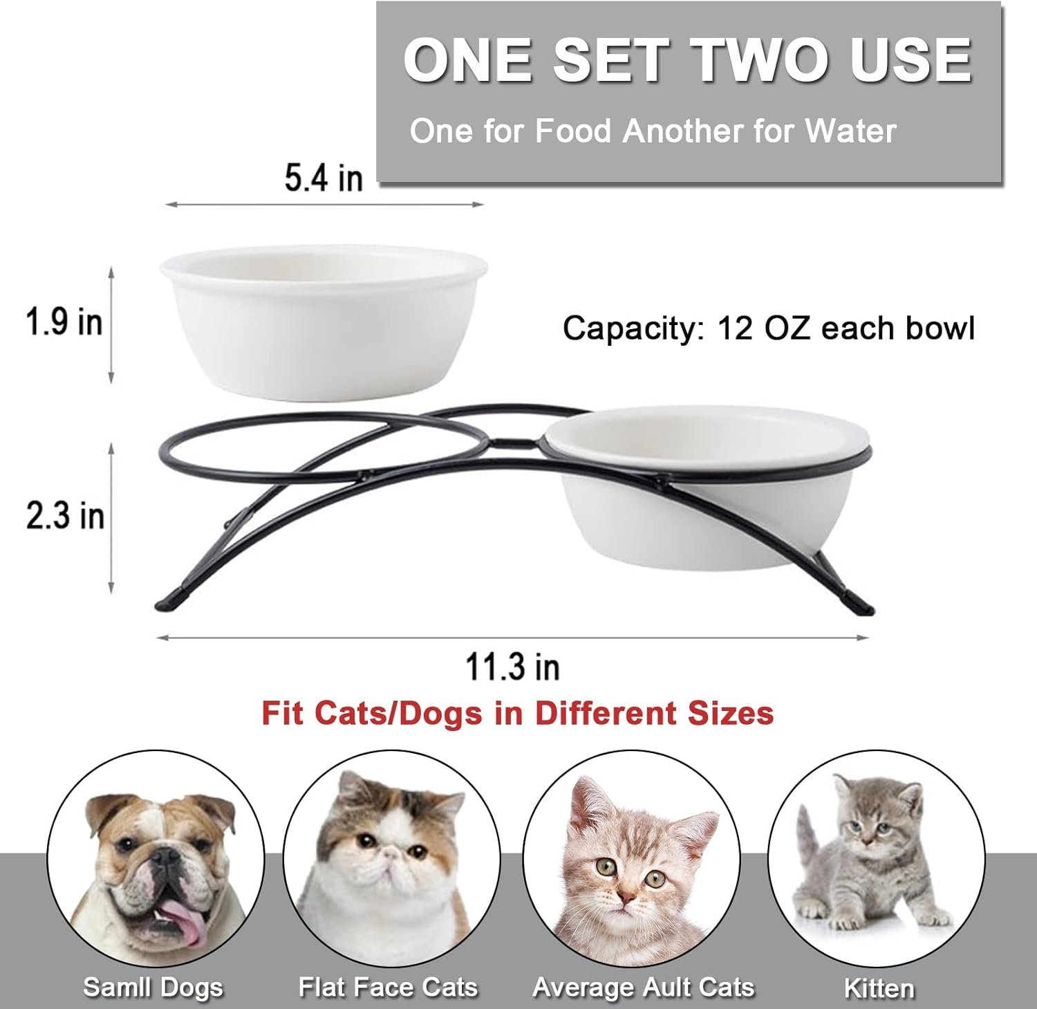 【 Sturdy Ceramic 】Made For Cat or Small Dog: 12 oz for each cat bowl, one pet bowl for food, and one for water, it could last for a day of food and water without having to refill constantly.
