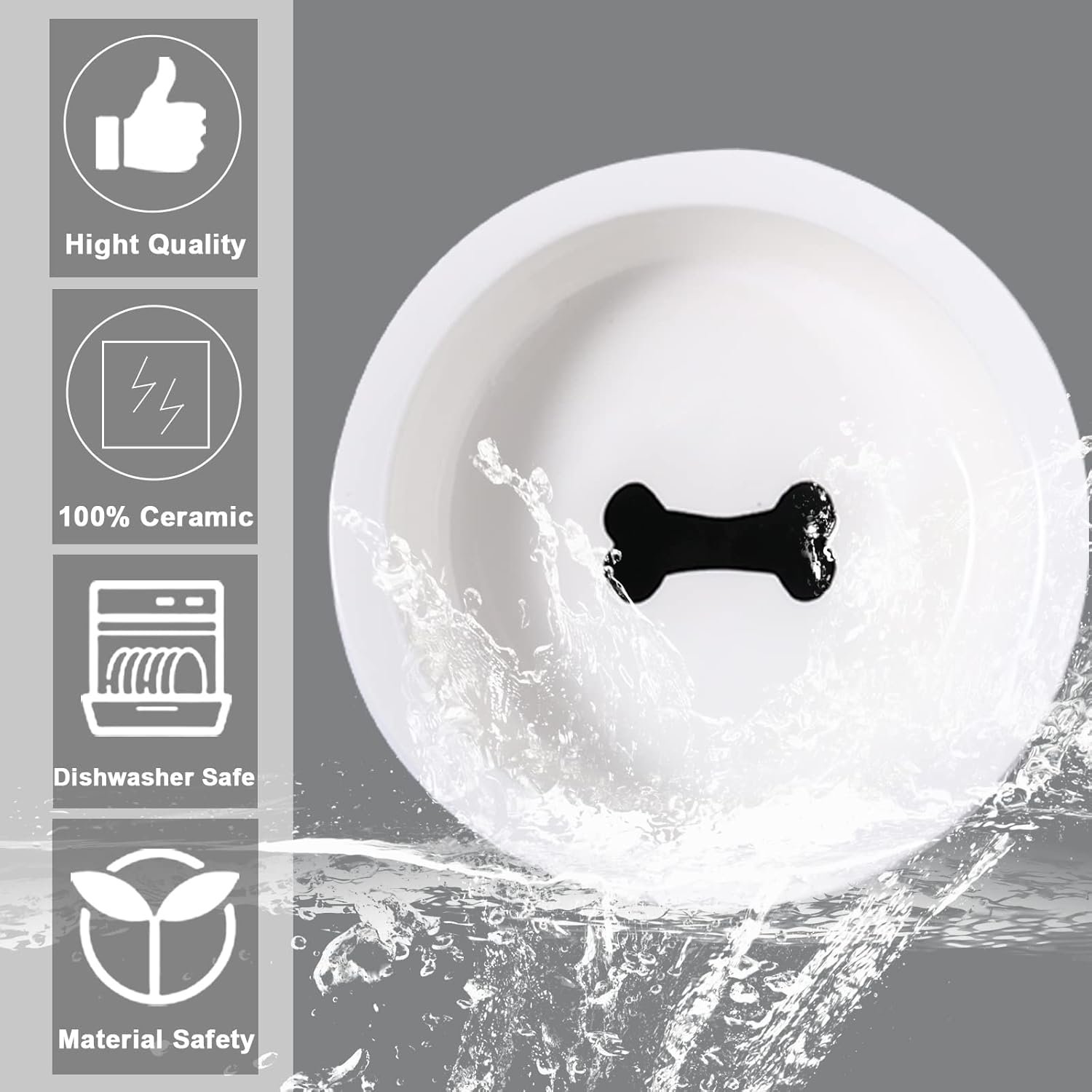 【 Made For Small Dog 】Delight your hungry puppy or kitten with food and water dishes featuring cute dog bone prints at the bottom of each bowl! This stylish and classic design in black and white will blend in with any decor in your home or kitchen.
