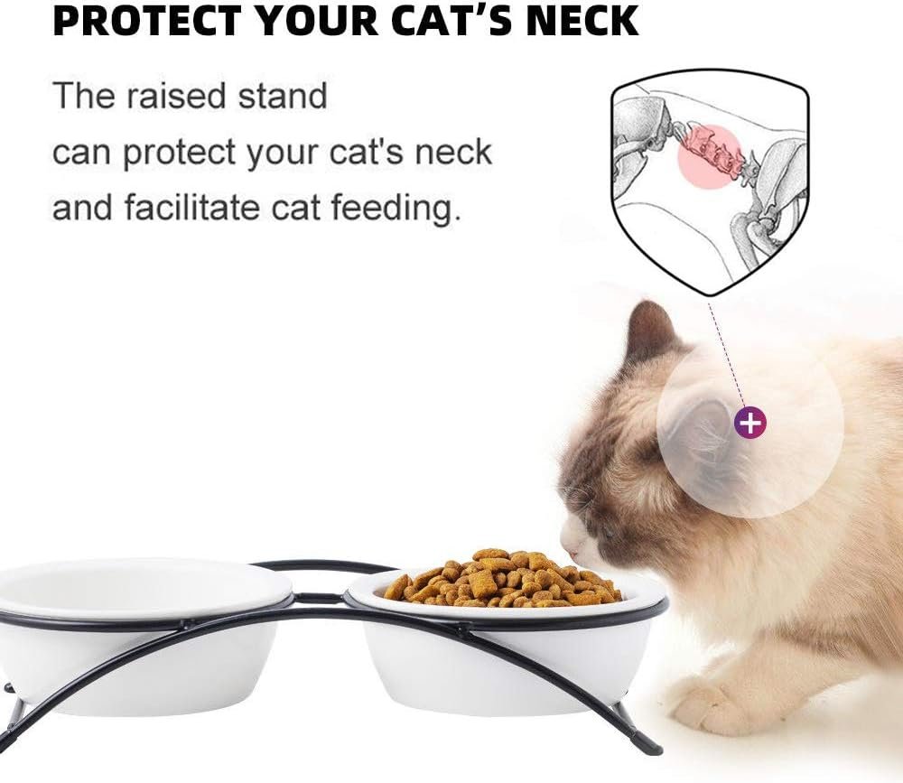 【 Made For Cat 】 The ceramic cat bowl helps keep kitty acne at bay or fewer cat chin blackheads. Microwave and Dishwasher safe.