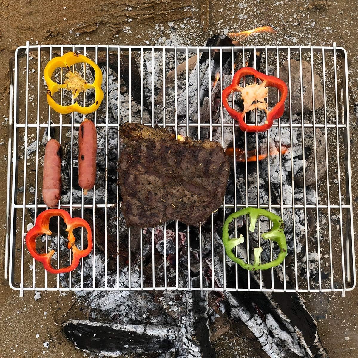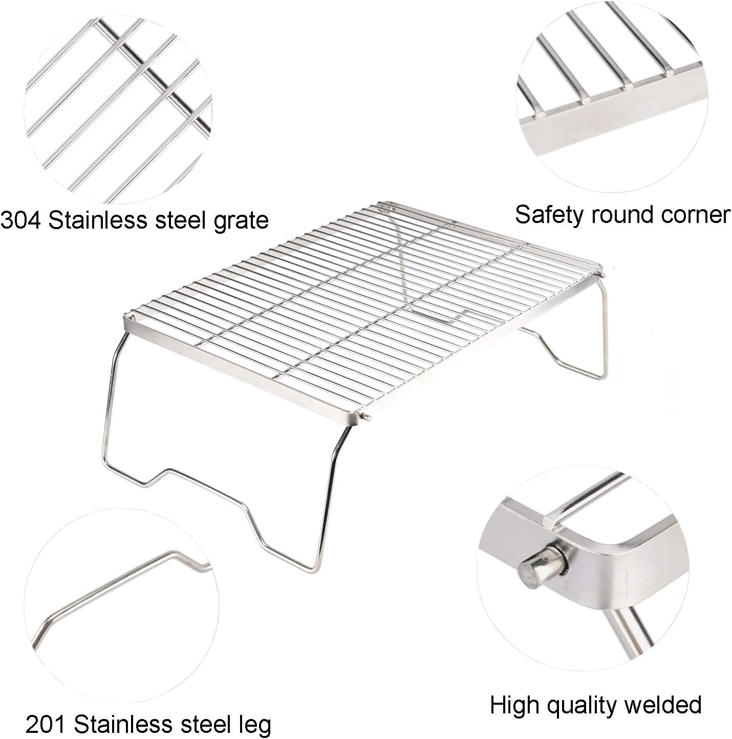 【Portable & foldable】The foldable grill is easy to use, just open it and put two legs down. Legs angle out for stability and help to take the weight. The camping grill can be foldable, you can packed the rack into a backpack.