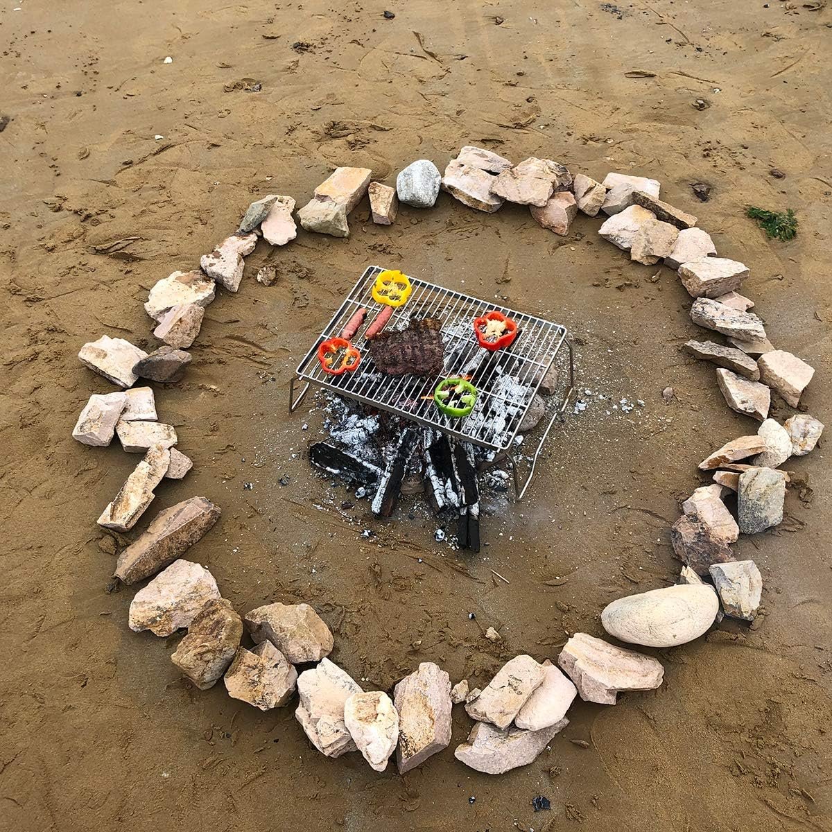 【More Cooking Options】The campfire grill can work as grill gate as well as burning stove supporting. You can use it for open fire cooking, or at an adventure into the great outdoors. Perfect for bbqs, picnics, camping or a night on the patio, backpacking, outdoor parties, traveling, beach, wild with your friends and families.