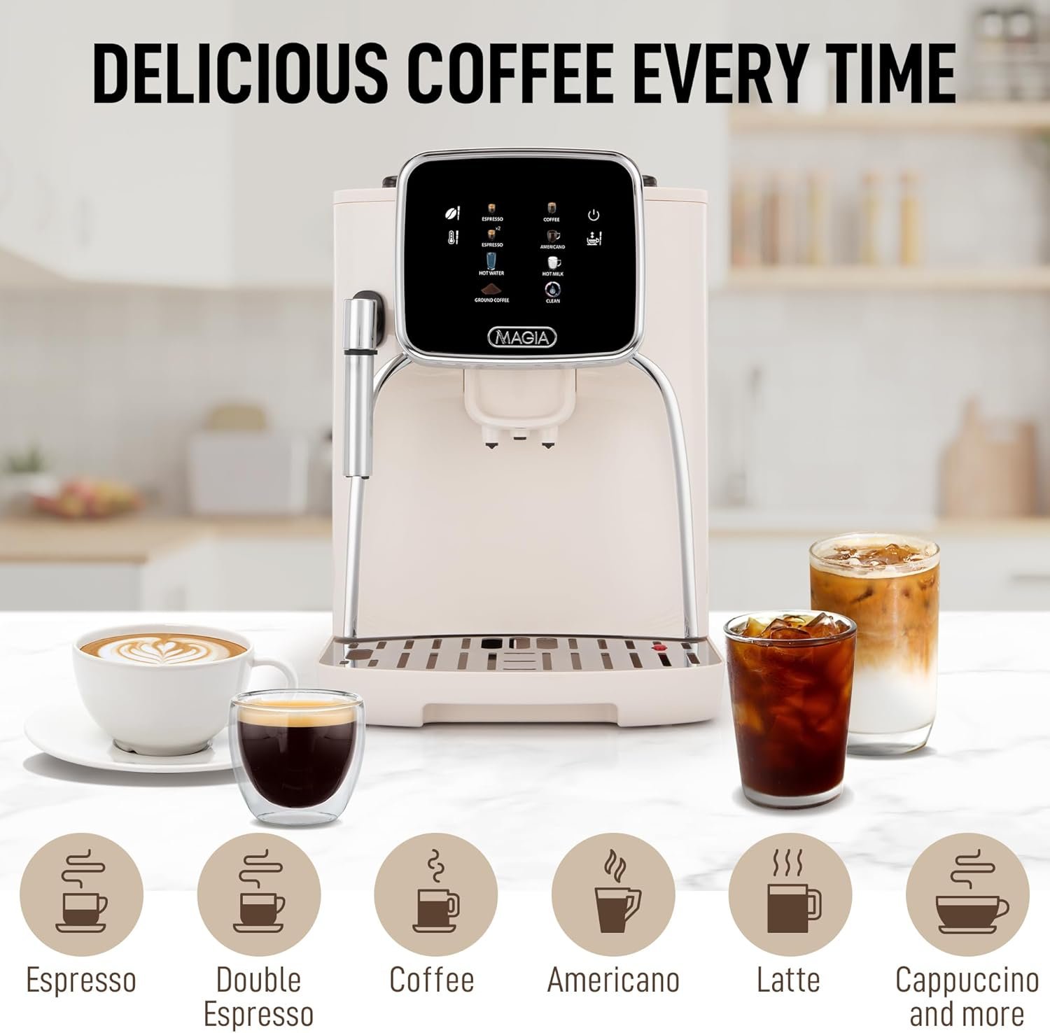 Zulay Kitchen Magia Clasica – Fully Automatic Espresso Machine With Grinder – Touch Screen Coffee Maker With One-Touch Operation – Milk Foam System For Latte, Cappuccino, Macchiato – Cream Silver