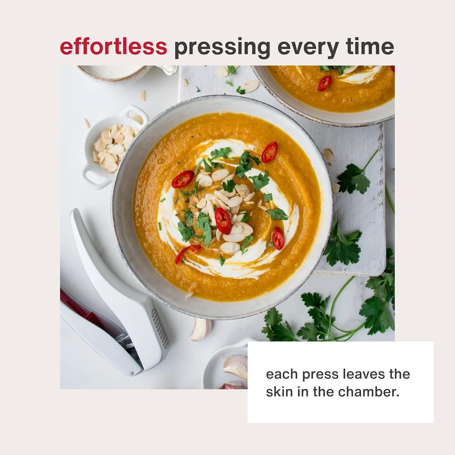 Garlic Press with Improved Ergonomics: This garlic press is designed to fit comfortably in your hand for easy and efficient garlic mincing